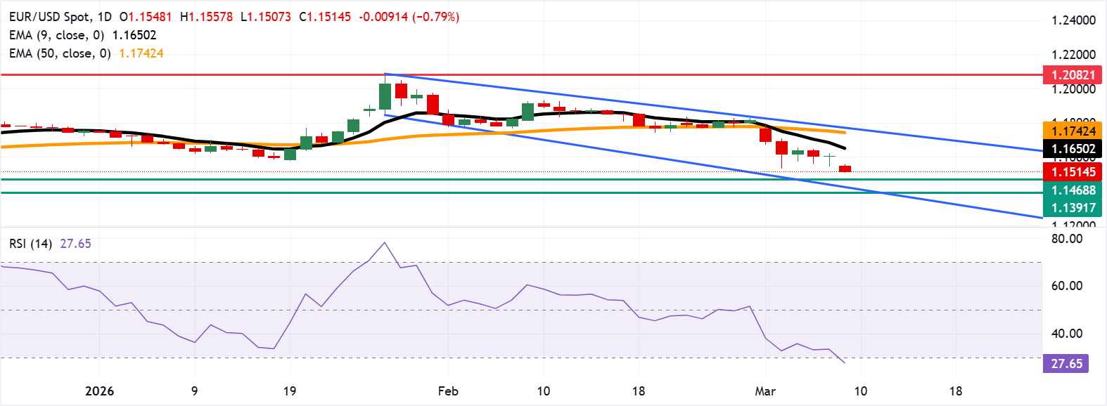 EUR/USD Price Forecast: Falls toward 1.1500 near seven-month lows